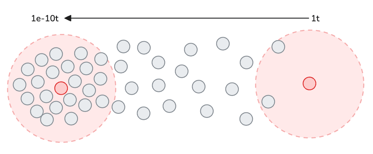 The denser cluster on the left will have lower tickrates as there are more computations to be accomplished