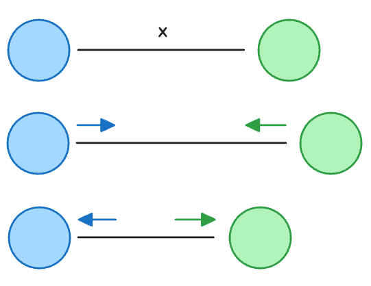Two objects connected by a spring will attempt to maintain a specific distance (x above). If the objects are further than x, they exert an attractive force toward each other. If the objects are closer than x, they exert a repellant force.