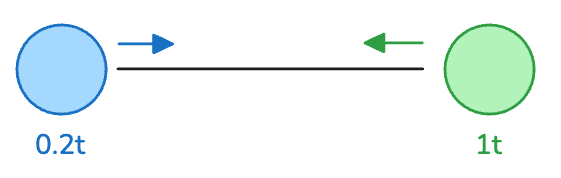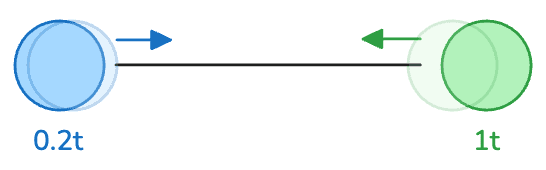 This introduces an asymmetric skew to the results of the computation. As the green object is capable of processing the effects of the spring more rapidly, the centerpoint of the two objects will shift closer to the blue object.